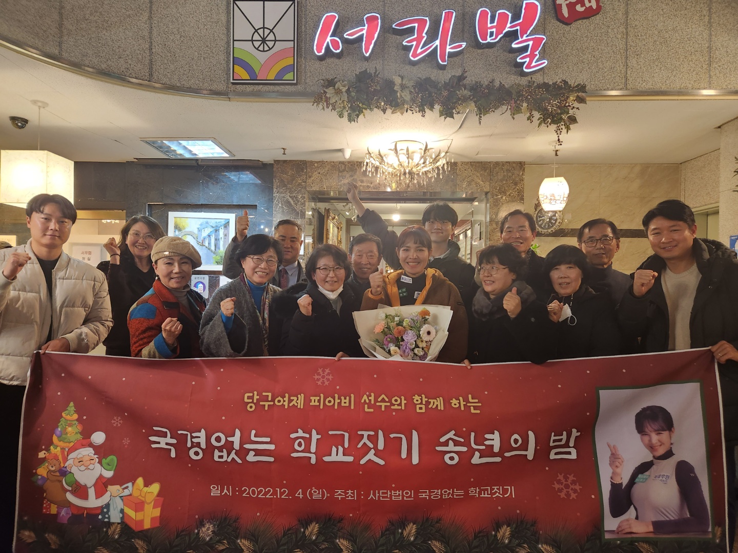 국경없는 학교짓기의 이사진들과 (중앙) 스롱피아비, (1시 방향) 이재구 회장