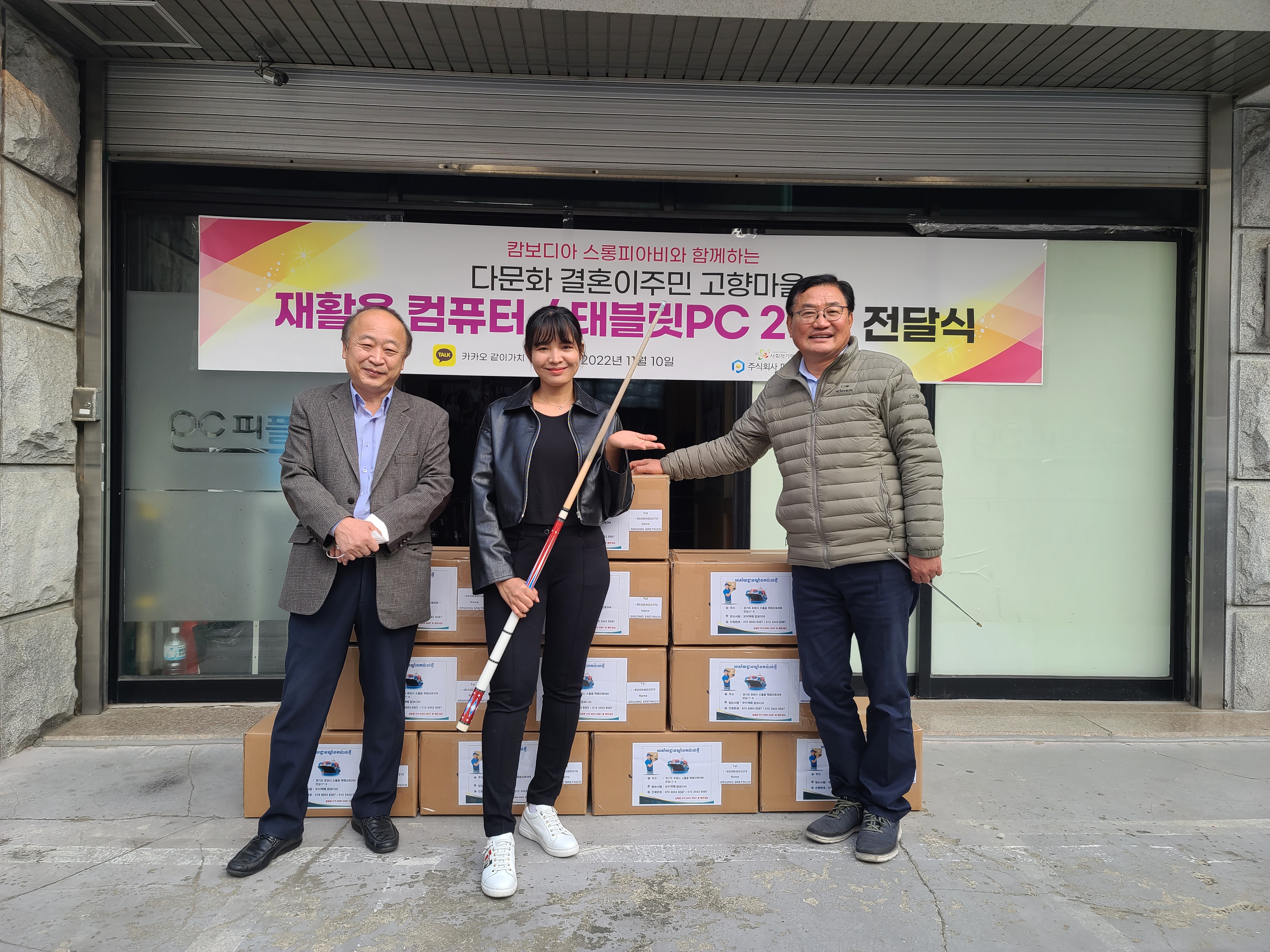 주식회사 피플앤컴 (peoplenc.co.kr) 스롱피아비는 피플앤컴의 새로운 홍보대사로서, 피플앤컴과 함께 캄보디아의 ICT 교육에 기여하겠다는 목표를 갖고 있다. 피플앤컴은 앞서 스롱피아비를 통해 캄보디아에 컴퓨터 20대를 지원하였으며, 화물편을 이용해 출발한 구호물품은 2022년 12월 15일 도착할 예정이다. 목적지는 스롱피아비가 홍보대사로 있는 비영리단체 "국경없는 학교짓기"가 건축하고 있는 프놈펜에 위치한 작은 시골 학교다. 국경없는 학교짓기는 2015년부터 활동을 시작한 비영리단체로서 네팔, 몽골, 필리핀, 베트남, 캄보디아 등에 진출해 있는 다국적 단체다. 국경없는 학교짓기 (dtkorea.or.kr) 국경없는 학교짓기와 함께 꿈을 꾸는 피아비는, 그들이 쌓아온 경험과 노하우를 전수받고, 그들과 함께 더 지속 가능한 목표를 이루기 위해 노력하겠다는 입장이다.