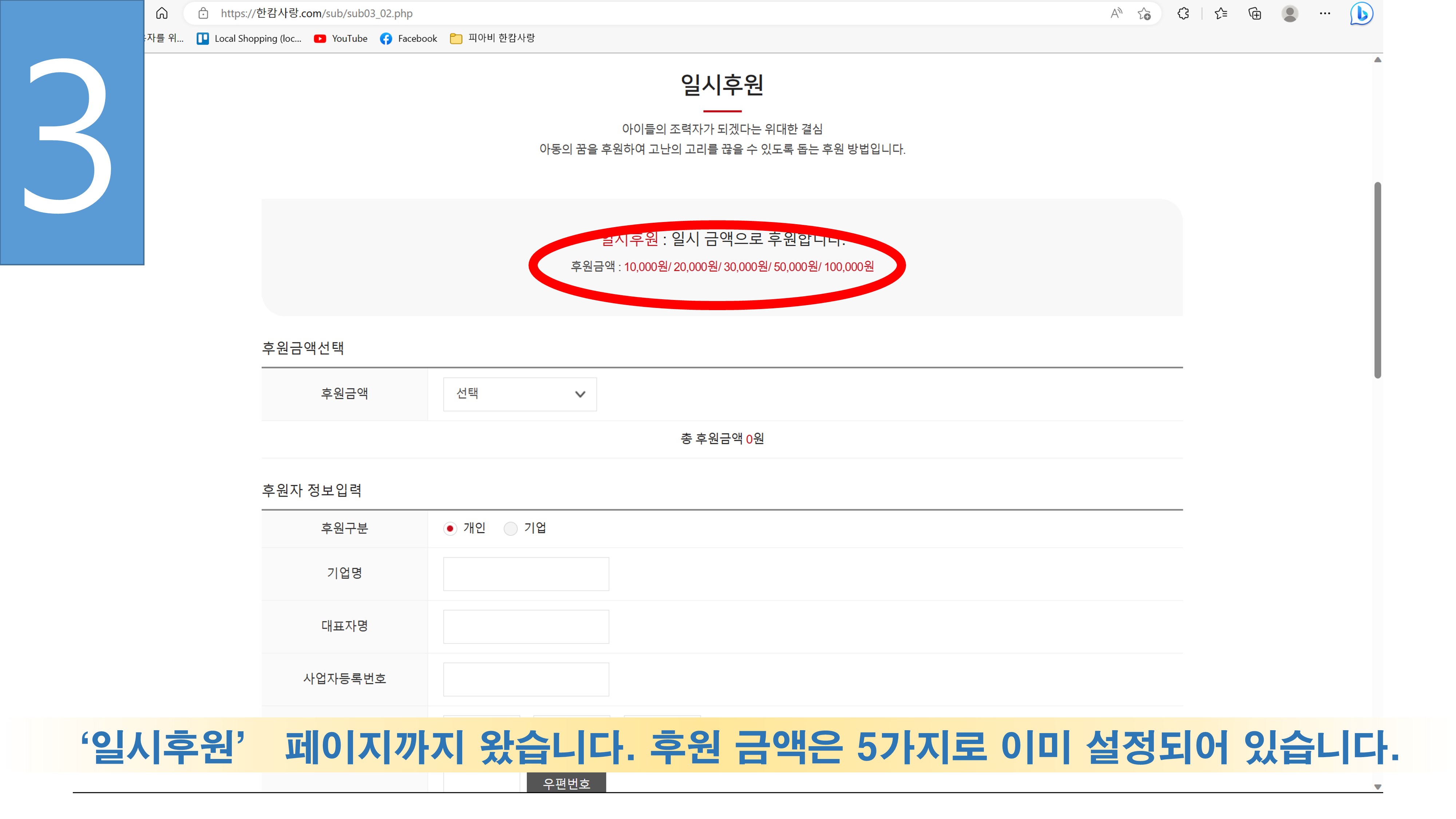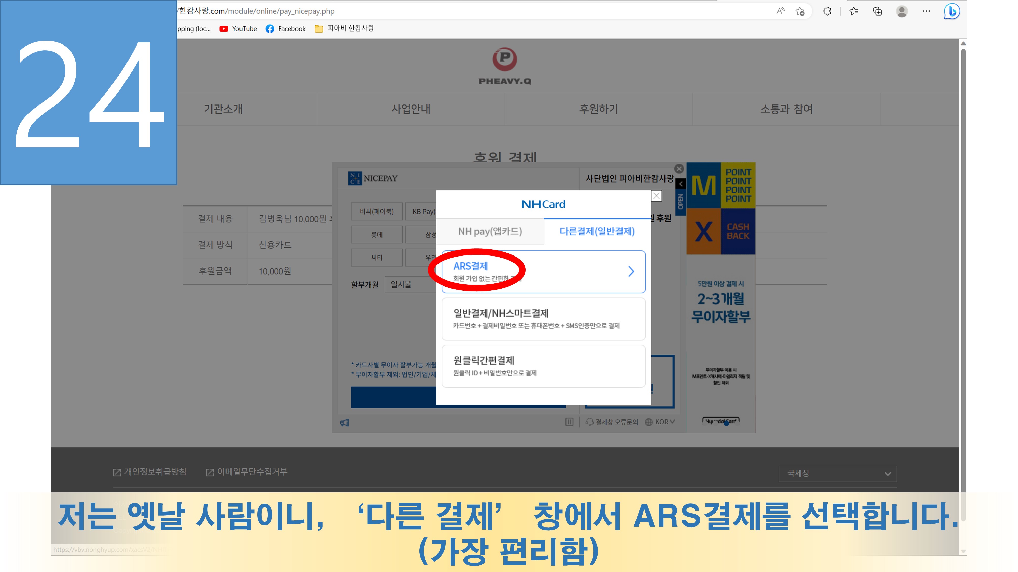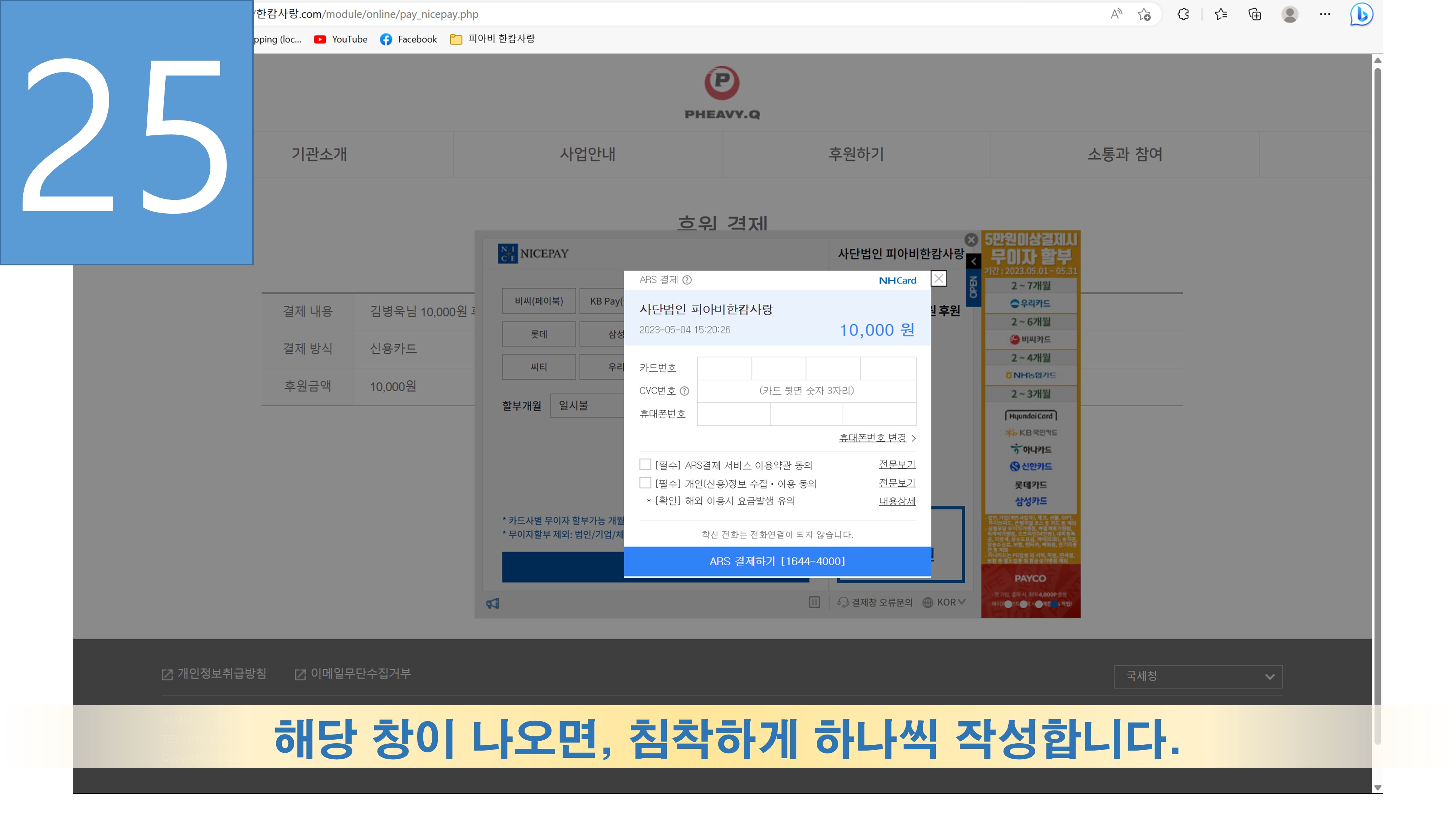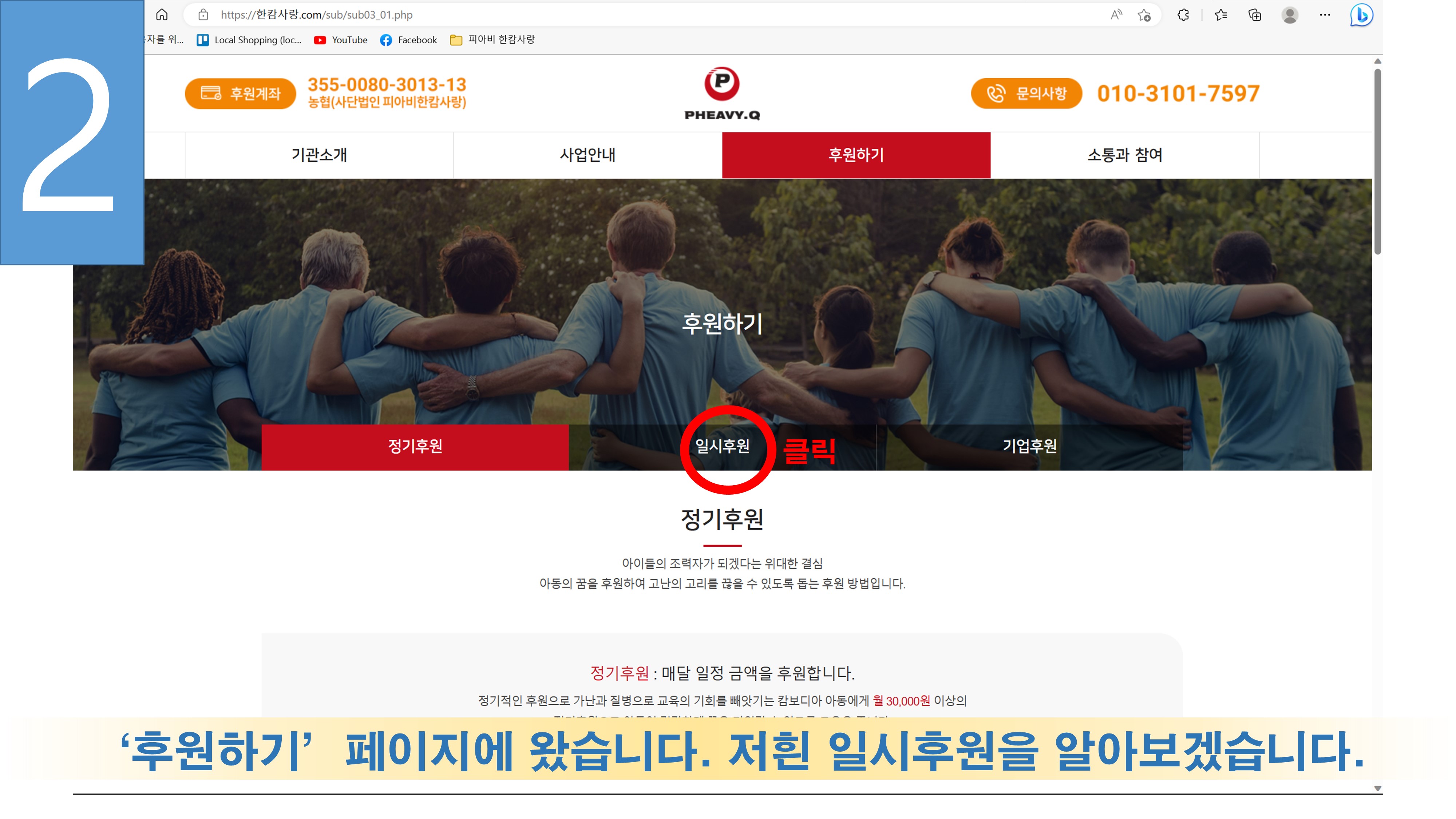 (컴퓨터) '일시후원' 방법 입니다 - 카드결제 or 계좌이체