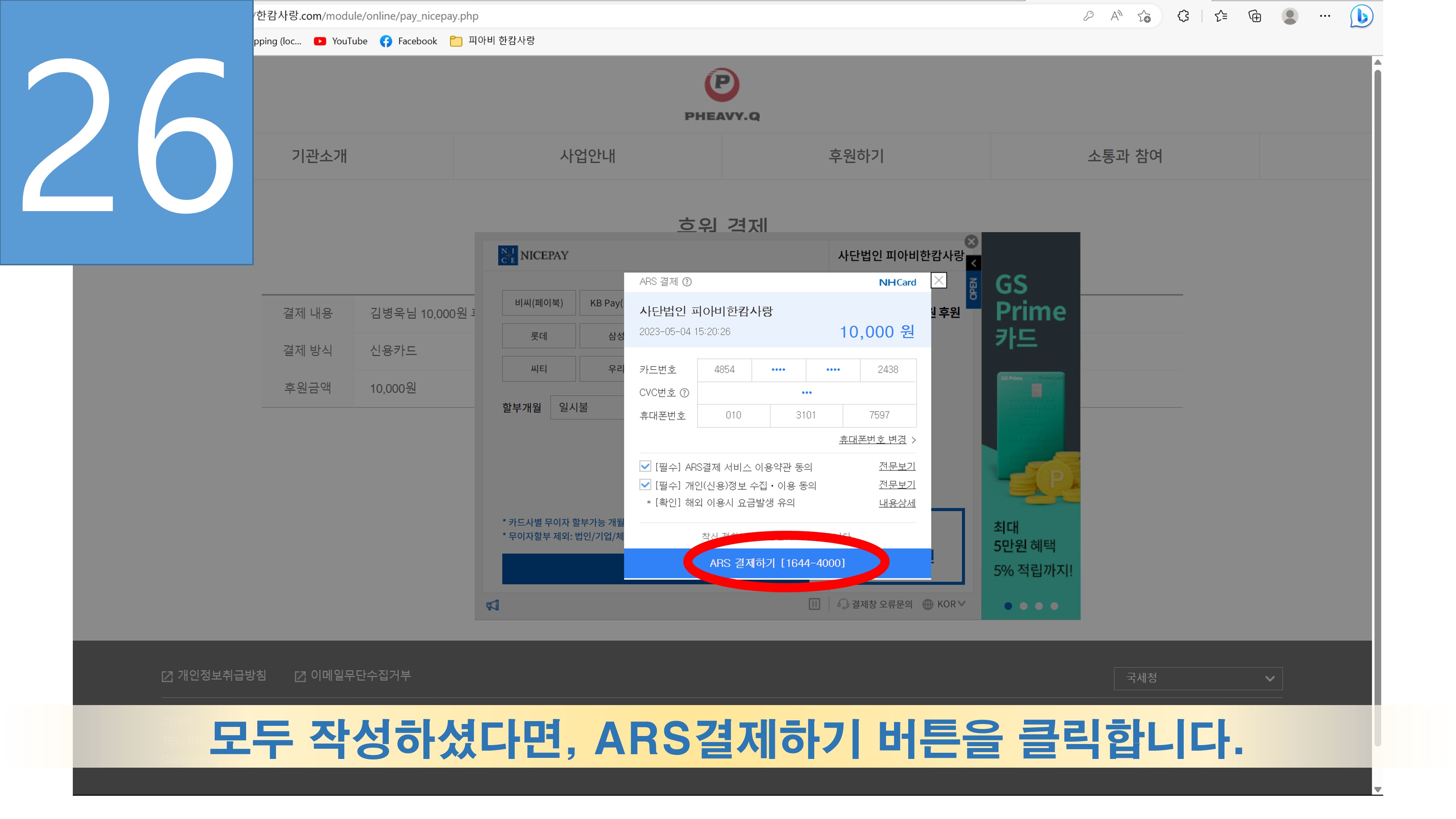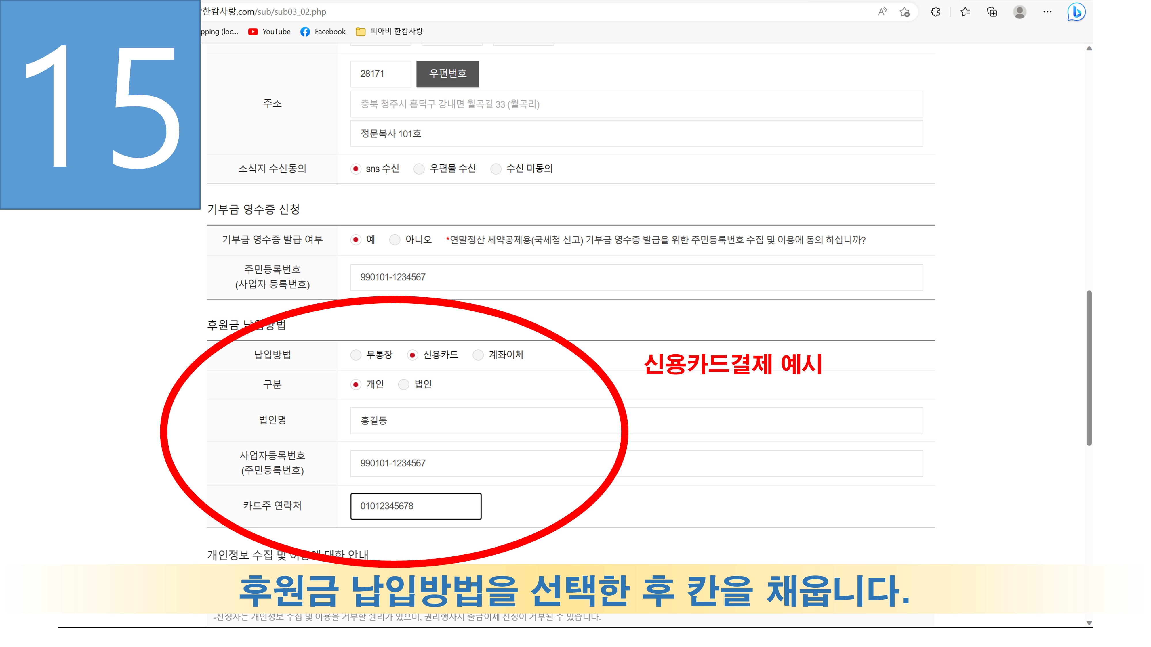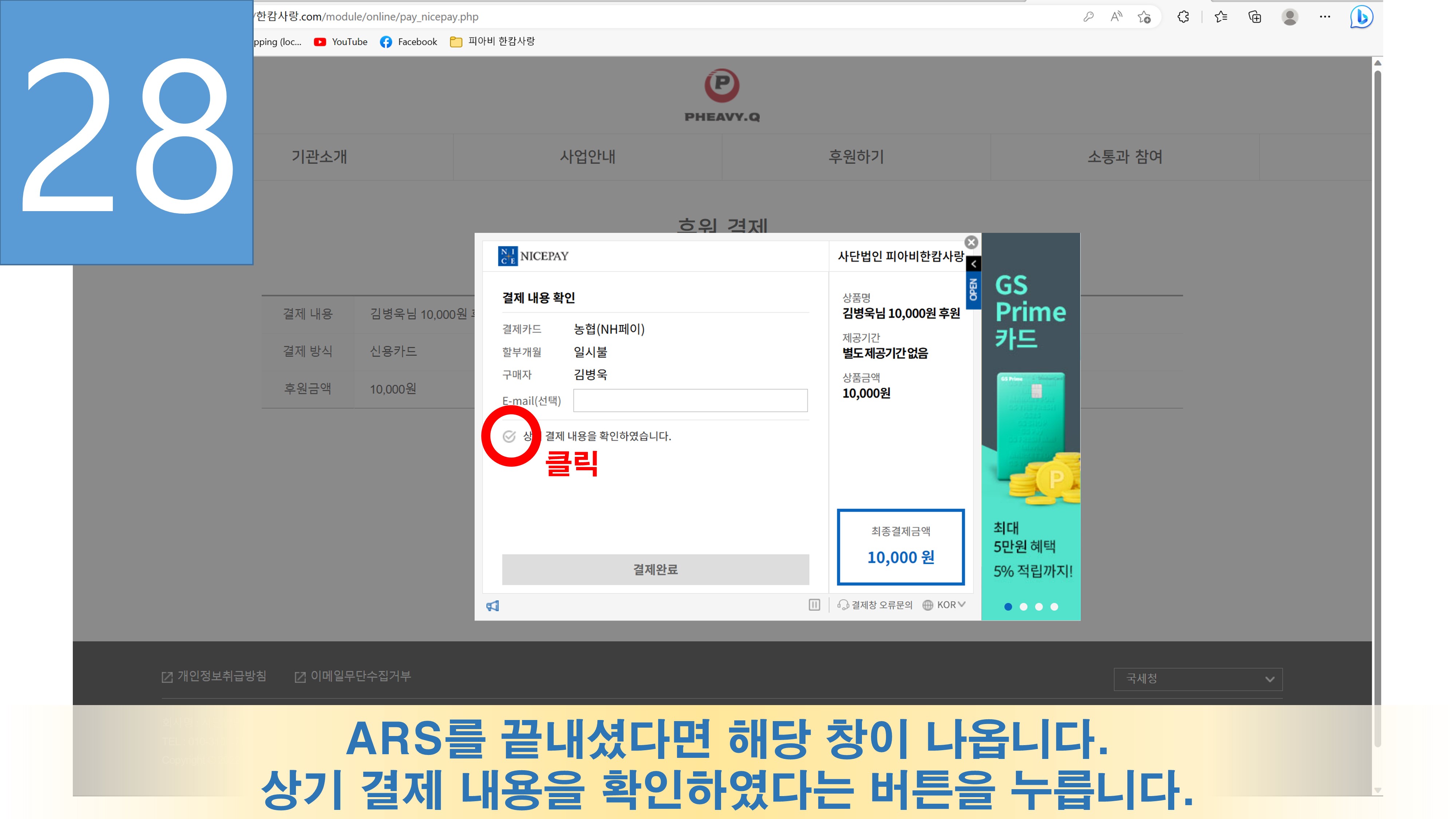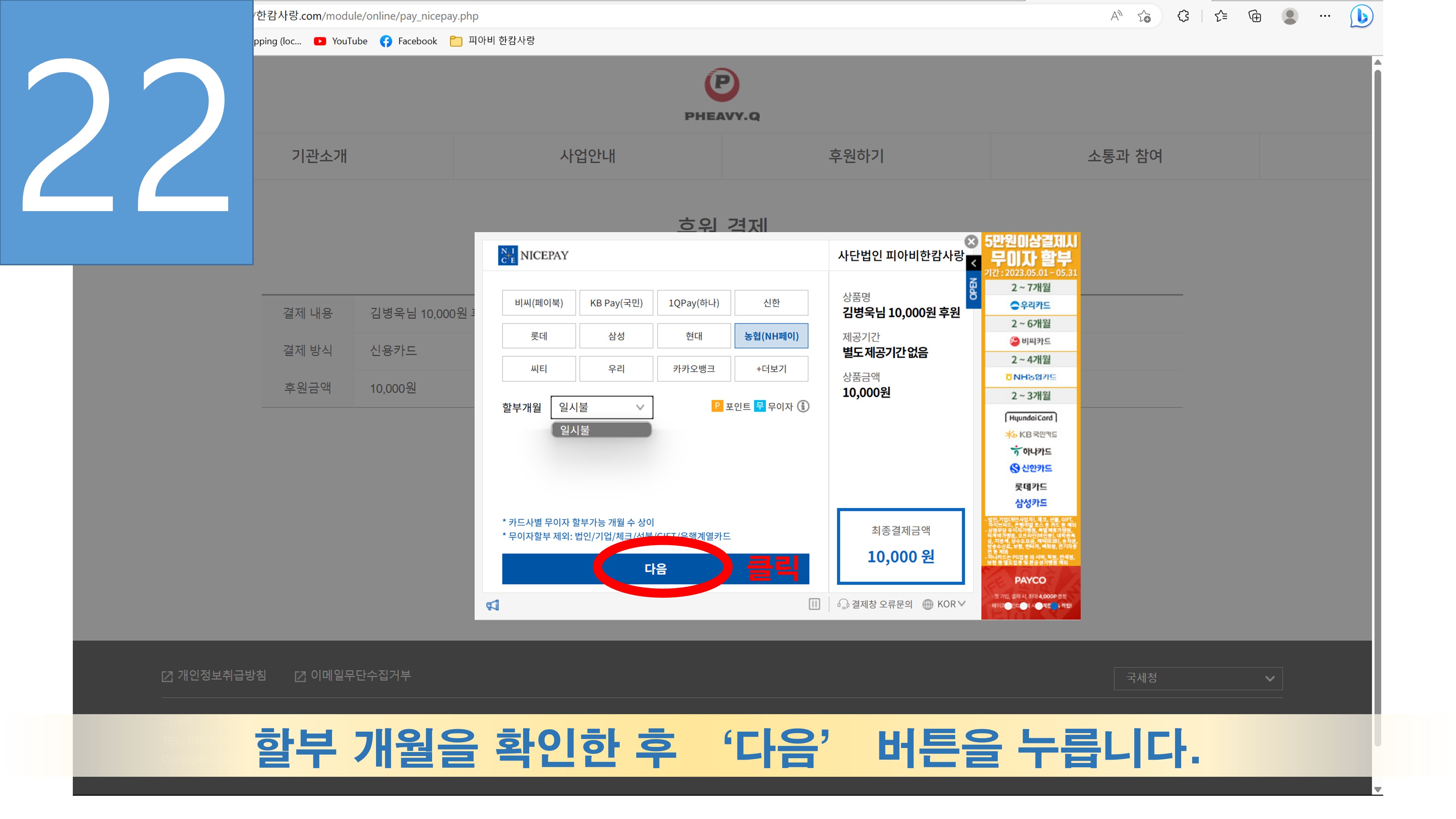 (컴퓨터) '일시후원' 방법 입니다 - 카드결제 or 계좌이체